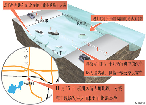 截至16日中午11時(shí)30分,浙江省杭州市風(fēng)情大道地鐵一號線施工現(xiàn)場塌陷事故已造成3名施工人員死亡,17人失蹤,入院救治19人。