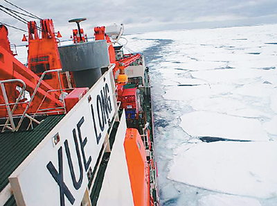 我國第二十五次南極考察隊目前已經(jīng)進入南極現(xiàn)場。當?shù)貢r間11月16日16時,科考隊員在正在浮冰區(qū)航行的雪龍船上舉行了南極昆侖站建站行動誓師大會,同時宣布了此次南極考察第一階段任務(wù)的實施計劃。