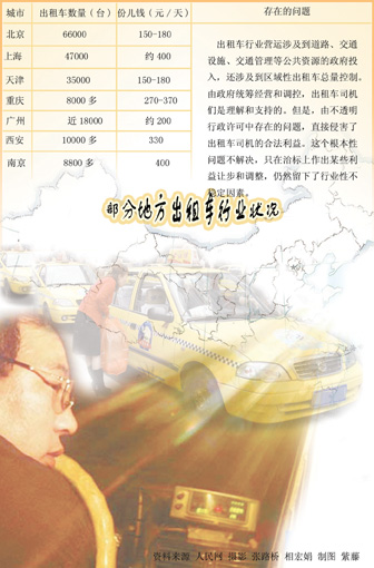 福建省莆田市上百輛出租車集體停運(yùn)同樣發(fā)生在19日的上午,停運(yùn)的理由是:莆田市內(nèi)非法營(yíng)運(yùn)的私家車和“克隆”的非法出租車以及“摩的”影響了出租車的營(yíng)運(yùn)市場(chǎng),導(dǎo)致正規(guī)出租車司機(jī)的收入下降。一位姓李的司機(jī)說(shuō),他的出租車月?tīng)I(yíng)業(yè)收入6000多元,扣除各種費(fèi)用后,一個(gè)月收入不到2000元。“摩的不用繳稅費(fèi),月收入可達(dá)3000元。”