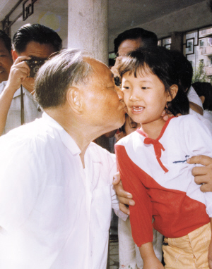 1986年8月20日,鄧小平同志視察紅橋區(qū)居民小區(qū)時(shí)親吻在這里游玩的孩子。