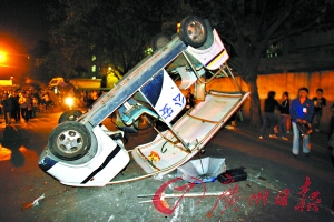記者昨晚8時(shí)左右趕至現(xiàn)場,發(fā)現(xiàn)路口已經(jīng)聚集了數(shù)十名警察和治安員。當(dāng)記者剛剛走進(jìn)開達(dá)玩具廠,就發(fā)現(xiàn)在路邊綠化帶旁已經(jīng)有5輛巡邏摩托車被放倒在地,車燈完全被砸壞,再往前行不到20米,就發(fā)現(xiàn)有2輛巡邏警車被掀翻砸爛在地,初步估計(jì)有近千人在工廠門口聚集。記者在人群中前行,沿路都是被砸爛的警車玻璃碎片。目擊者告訴記者,事故發(fā)生在晚上7時(shí)左右,目前已有5人受傷。