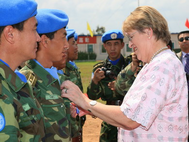 洛伊女士熱情贊揚了中國對聯(lián)合國維和事業(yè)的支持。她說,自2004年3月第一支部隊抵利以來,中國維和部隊為利和平進(jìn)程和人民生活改善做出了重大貢獻(xiàn)。這充分顯示了中國政府和人民對聯(lián)合國在利維和行動的支持,積極幫助利實現(xiàn)和平、安全、復(fù)興與發(fā)展。她高度贊賞中國維和部隊的出色表現(xiàn),稱贊中國三支維和分隊的領(lǐng)導(dǎo)“指揮有方”,中國軍隊是“中國的驕傲”。她還對中國工兵分隊在任務(wù)期即將結(jié)束之際仍愉快受領(lǐng)任務(wù),修建連接利東南兩州首府要道上的橋梁表示感謝,相信他們一定能出色完成任務(wù),造福于利人民。洛伊最后勉勵維和官兵為了實現(xiàn)和鞏固世界和平與安全而繼續(xù)努力。