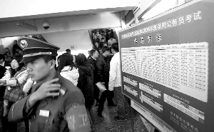 據(jù)了解,今年的公務(wù)員考試中,北京地區(qū)考生9.5萬(wàn)人,比去年增加了1.5萬(wàn)人,北京今年共在全市設(shè)立了132個(gè)考點(diǎn)、3186個(gè)考場(chǎng)。今年,國(guó)家公務(wù)員考試考錄比例為57比1,較之去年46比1的考錄比例競(jìng)爭(zhēng)更加激烈,不少參加考試的考生戲稱自己是“炮灰”。