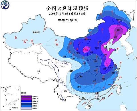 2008年12月3日08時(shí)全國(guó)大風(fēng)降溫預(yù)報(bào)圖