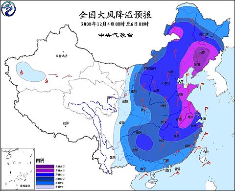 2008年12月4日08時(shí)全國(guó)大風(fēng)降溫預(yù)報(bào)圖