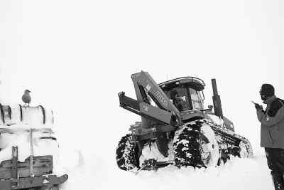 作業(yè)隊(duì)員要躺倒在雪地上,在雪橇頭部或者尾部位置挖出一個(gè)雪洞才能找到聯(lián)結(jié)部位,再套上鋼纜聯(lián)結(jié)上卡特車。隨后,卡特車慢慢加速拖動(dòng)雪橇,重新找一個(gè)地方放置。部分雪橇上已經(jīng)滿載了油桶,拉動(dòng)起來更加費(fèi)力。有一個(gè)雪橇硬生生扯斷了鋼纜,作業(yè)隊(duì)員另找了根鋼纜,并作四股,才把這輛雪橇拉動(dòng)。風(fēng)雪之中,隊(duì)員們最終用了4個(gè)小時(shí)才將12個(gè)雪橇“放松”完畢。