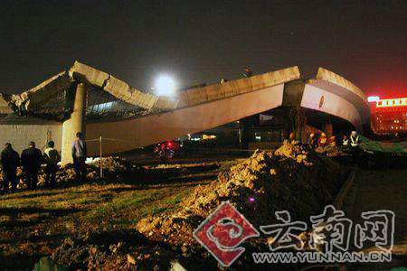中新社昆明十二月十日電 (楊晶)昆明市政府今日證實,九日晚發(fā)生在昆明北郊的在拆立交橋垮塌事故已造成兩人死亡、四人受傷,受傷人員已及時被送往醫(yī)院救治,事故原因初步查明系施工單位違反操作規(guī)程所致。