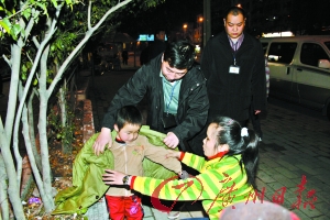 廣州市救助站流動(dòng)服務(wù)隊(duì)的工作人員深夜巡邏送溫暖。