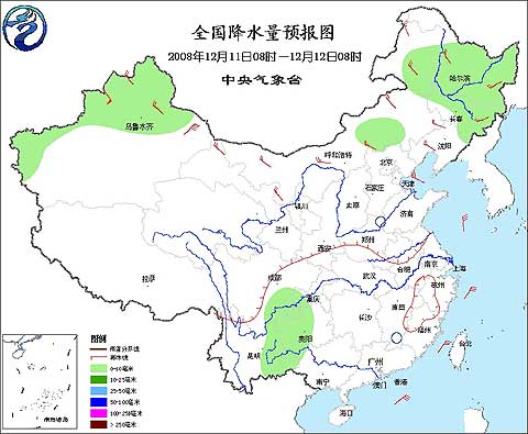 2008年12月11日08時—12月12日08時全國降水量預(yù)報圖