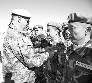 今天的授勛儀式上,62名連續(xù)兩批在黎執(zhí)行維和任務(wù)的官兵被授予三級(jí)維和勛章,5名駐黎維和參謀軍官被授予二級(jí)維和勛章,其余273名官兵被授予一級(jí)維和勛章。