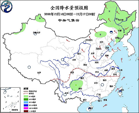 中央氣象臺2008年12月16日06時發(fā)布未來三天天氣預(yù)報: