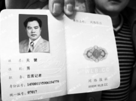 《網(wǎng)絡(luò)報(bào)》給關(guān)鍵發(fā)的工作證。