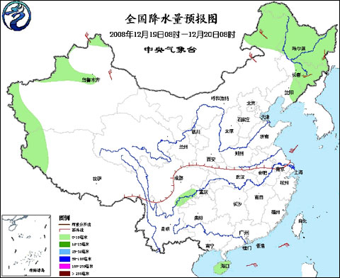 2008年12月19日8時(shí)—12月20日8時(shí)全國(guó)降水量預(yù)報(bào)圖