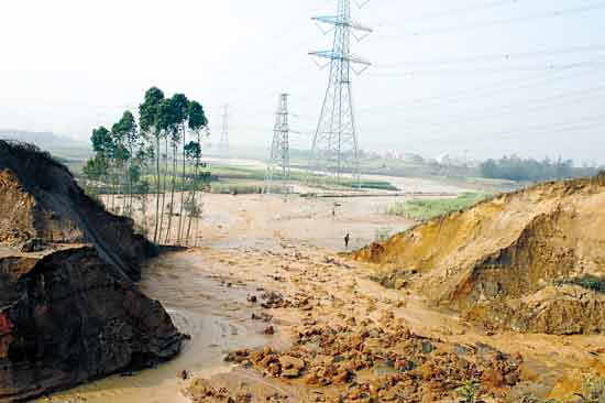 昨天上午,記者接到報(bào)料后立即趕赴現(xiàn)場,看見大批搶險(xiǎn)人員正在運(yùn)河上搶險(xiǎn)救災(zāi)。雷州青年運(yùn)河遂溪至湛江的東海河平嶺河段決口處在廣湛高速公路源水出口附近,運(yùn)河的河床塌方有10多米深,險(xiǎn)段長250多米,決口80米寬,運(yùn)河水不停地灌入西南面農(nóng)田,農(nóng)田受浸。據(jù)遂溪縣有關(guān)部門統(tǒng)計(jì),茅村和源水兩村委會六條自然村農(nóng)田受浸面積達(dá)數(shù)百畝。而現(xiàn)場被沖掉的土方達(dá)3萬立方米。