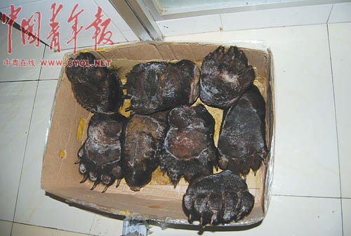 熊掌來路廣泛。由于當(dāng)?shù)厥召?gòu)已完全不能滿足需求,因此,每年都有大量熊掌從俄羅斯走私到這里。不久以前,曾有當(dāng)?shù)厣倘艘淮螐耐饷孢M(jìn)了6000斤熊掌。這些貨物“從來不愁銷路”。