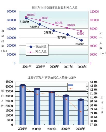 就在今天,公安部網(wǎng)站發(fā)表文章稱,2008年“全國(guó)道路交通安全形勢(shì)總體平穩(wěn)”。文章列舉了一系列數(shù)據(jù):2008年,全國(guó)共發(fā)生道路交通事故265204起,造成73484人死亡、304919人受傷,直接財(cái)產(chǎn)損失10.1億元。與2007年相比,以上各項(xiàng)都有所減少。