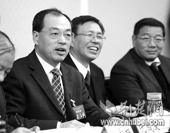 昨日下午,武漢市市長阮成發(fā)來到江岸、漢陽、洪山三個代表團,聽取市人大代表們的意見。在與一位代表對話時,阮成發(fā)誠懇地做了三次檢討。