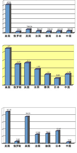 中國國防費總額、軍人人均數(shù)額,仍低于世界一些主要大國的水平。2007年,中國年度國防費相當(dāng)于美國的7.51%、英國的62.43%。軍人人均數(shù)額是美國的4.49%,日本的11.3%,英國的5.31%,法國的15.76%,德國的14.33%。從國家國防負擔(dān)的相對比例看,中國國防費僅占國內(nèi)生產(chǎn)總值的1.38%,而美國占4.5%,英國占2.7%,法國占1.92%。