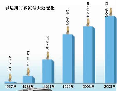 此后,春運(yùn)成為中國社會(huì)一個(gè)越來越頻繁使用的關(guān)鍵詞。每年歷時(shí)40天左右的春運(yùn),被國外媒體稱為全球最大的人口流動(dòng)。