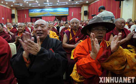 “維護(hù)社會穩(wěn)定、維護(hù)社會主義法制、維護(hù)人民根本利益;自覺做到不參與分裂祖國的活動,不參加非法游行示威等擾亂社會秩序的活動!边@條新增加的內(nèi)容受到了與會高僧活佛和僧人的擁護(hù)。