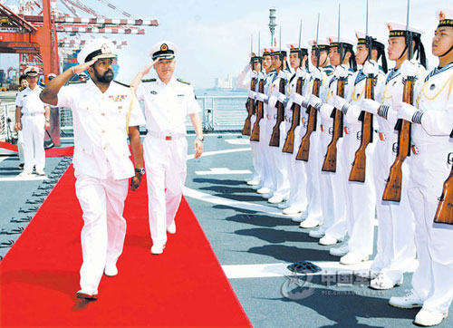 赴巴基斯坦參加“和平-09”海上多國聯(lián)合軍事演習的“廣州”號導彈驅(qū)逐艦今天?克估锾m卡科倫坡港,進行第二次補給。