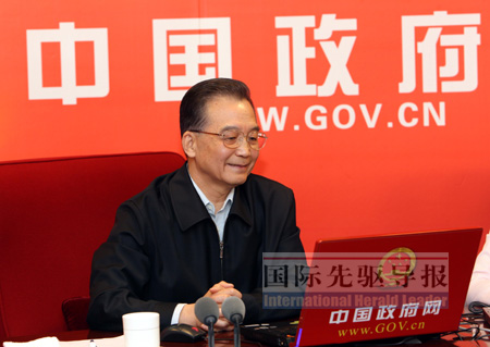 國(guó)際先驅(qū)導(dǎo)報(bào)記者楊眉發(fā)自北京 “溫總理來(lái)啦!”2月28日下午,從中國(guó)政府網(wǎng)和新華網(wǎng)的工作室內(nèi)傳出這樣一聲歡呼。隨后,工作人員小張跟著人群擠到門(mén)口,卻踮起腳都看不到溫總理的面孔。身前的同事回頭沖她一樂(lè):“沒(méi)辦法,總理就是這么受歡迎!