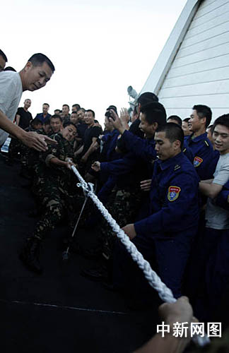 中新網(wǎng)“?凇迸3月19日電 (記者 孫自法) 3月中旬,為豐富廣大護航官兵業(yè)余生活,中國海軍艦艇編隊“?凇碧枌(dǎo)彈驅(qū)逐艦在護航之余組織舉辦第二屆甲板運動會,艦上官兵積極參與,各類比賽、訓(xùn)練項目精彩紛呈。編隊三亞起航遠赴亞丁灣、索馬里海域執(zhí)行護航任務(wù)近三個月來,廣大護航官兵身心狀態(tài)良好、士氣昂揚。