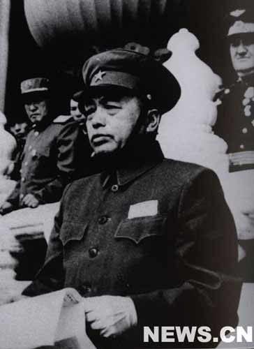 在檢閱臺上的還有國防委員會副主席劉伯承、徐向前、聶榮臻、葉劍英、程潛、張治中、傅作義、龍云。