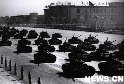 向著工業(yè)化飛躍前進(jìn)的偉大祖國,給了人民解放軍各種現(xiàn)代化武器裝備。受閱各部隊(duì)的裝備中最新式自動(dòng)步槍、大炮、坦克、高速度的噴氣殲擊機(jī),都是祖國制造出來的。