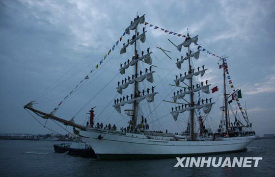 18日18時(shí)35分,墨西哥海軍“夸烏特莫克”號(hào)風(fēng)帆訓(xùn)練艦緩緩?fù)?吭谇鄭u大港二號(hào)碼頭。這是參加紀(jì)念中國(guó)人民解放軍海軍成立60周年多國(guó)海軍活動(dòng)到訪的第一艘外國(guó)海軍艦艇。