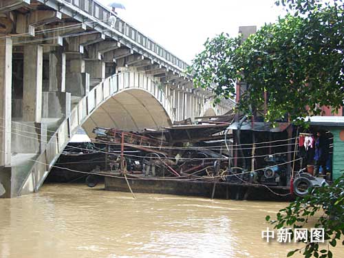 中新網(wǎng)柳州7月5日電 (李建明 王剛)廣西柳州市柳城縣柳城大橋險(xiǎn)情今天暫時(shí)得以緩解——7月3日晚,三艘百噸級(jí)采砂船被洪水沖至大橋橋拱,并死死卡住大橋,加上大橋本身正在搶修,情況異常緊急。