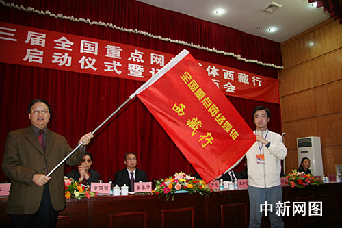 中新網(wǎng)9月10日電 “歷史的跨越 輝煌的成就”——第三屆全國(guó)重點(diǎn)網(wǎng)絡(luò)媒體西藏行大型采訪活動(dòng)今日下午正式啟動(dòng)。中央和部分省市近30家重點(diǎn)新聞網(wǎng)站的近50名記者齊聚世界海撥最高的新聞發(fā)布大廳,參加了啟動(dòng)儀式。