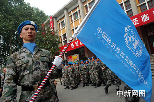 中新網(wǎng)洛陽(yáng)9月25日電(喬獻(xiàn) 董紅哲 依日歌)9月25日上午,中國(guó)第六批赴蘇丹瓦烏地區(qū)維和的工程兵大隊(duì)、運(yùn)輸大隊(duì)在素有“鐵軍”之稱的駐洛陽(yáng)某紅軍師成立。