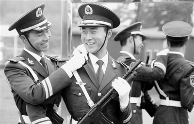 這個(gè)方隊(duì)60%是擁有雙學(xué)士學(xué)位的國防生,大多畢業(yè)于名牌大學(xué)。剛進(jìn)閱兵村時(shí),他們坦言:選擇受閱,或?yàn)殚_闊眼界,或?yàn)榉e累資本,或?yàn)榉峙鋫(gè)理想單位,等等!胺疥(duì)要走得齊,首先人員的思想要齊;強(qiáng)化當(dāng)代革命軍人核心價(jià)值觀,才能提升學(xué)員的精氣神!狈疥(duì)政委趙建雄對“癥”開“方”。