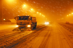 雪夜里,各主要公交場(chǎng)站的保修人員隨時(shí)備勤,今晨出車前要為每輛車做“體檢”,細(xì)心的地鐵運(yùn)營(yíng)公司工作人員還連夜在各個(gè)地鐵站出入口為乘客備好了防滑墊。