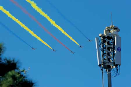 10月1日上午,國慶60周年盛大閱兵式在首都天安門廣場隆重舉行。11時(shí)20分,由我國首批殲擊機(jī)女飛行員組成的空中第十二梯隊(duì),駕馭著15架教—8戰(zhàn)機(jī),分3個(gè)楔形編隊(duì)飛臨天安門上空,在人們的歡呼聲中呼嘯而過,在空中留下道道絢麗“彩虹”,上演了一場精彩的閱兵壓軸大戲,向世人宣告我國成為世界上擁有殲擊機(jī)女飛行員的國家之一。閱兵后不久,中央軍委委員、空軍司令員許其亮,空軍政治委員鄧昌友簽發(fā)通令,為這個(gè)英雄群體記集體一等功。