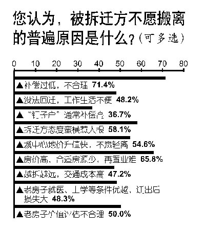 被拆遷方為何不愿搬離?71.4%的人首選“補(bǔ)償過低,不合理”