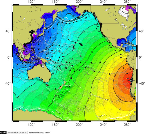 由于此次地震已在智利沿岸引發(fā)了海嘯,位于夏威夷的太平洋海嘯警報(bào)中心27日14時(shí)46分向智利、秘魯和厄瓜多爾發(fā)布了第一份海嘯警報(bào)信息,隨后又將預(yù)警范圍擴(kuò)大至整個(gè)中美洲以及太平洋國(guó)家和地區(qū)。智利、秘魯、法屬波利尼西亞 、澳大利亞 、新西蘭 、日本等國(guó)已經(jīng)發(fā)布了官方的海嘯警報(bào)。俄羅斯、菲律賓等國(guó)則表示,將密切監(jiān)視海嘯監(jiān)測(cè)數(shù)據(jù)情況,然后決定是否發(fā)布海嘯預(yù)警。