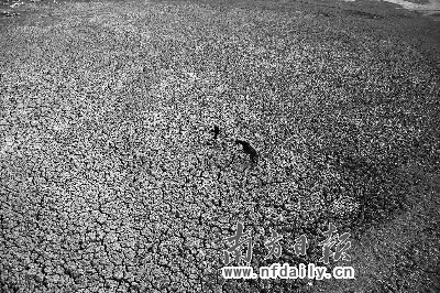 陸良縣德格海子水庫(kù)庫(kù)容160萬(wàn)立方米,由于持續(xù)干旱已干涸見(jiàn)底。20日下午,溫家寶曾來(lái)過(guò)這里。記者現(xiàn)場(chǎng)放眼望去,水庫(kù)庫(kù)底一條條縱橫交錯(cuò)的裂痕一望無(wú)垠,近看密密麻麻的泥塊像梅花樁一樣,裂痕深度足有二十厘米,上面還依稀可見(jiàn)干枯死的河蚌。