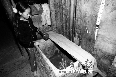 偏僻落后的牛角村,以種植畜養(yǎng)為主的原始經(jīng)濟(jì)遭遇強(qiáng)旱后,人均年收入已降至600多元。村里的一些年輕人本想外出打工,卻遭遇入不敷出的困境。楊昌毅就曾到深圳做過(guò)兩年保安,“每個(gè)月1200元工資,只能在當(dāng)?shù)仞B(yǎng)活我自己,我家里還有父母,兩個(gè)小孩和老婆,根本劃不來(lái)。”像楊昌毅這樣在牛角村里已經(jīng)算是能講普通話(huà)、會(huì)認(rèn)字的“文化人”。而記者在采訪(fǎng)中了解到,更多的牛角村民連自己名字也不會(huì)寫(xiě),普通話(huà)只能聽(tīng)懂一半!八麄兂鋈ゴ蚬,只能重復(fù)我的命運(yùn)”,楊昌毅說(shuō),而且“每個(gè)星期都要下山挑水,沒(méi)有年輕人在家,老人怎么辦?” 南方日?qǐng)?bào)特派記者謝慶裕