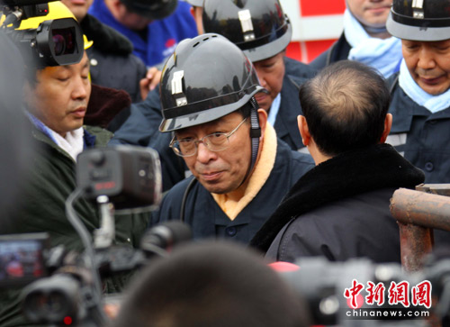 中新網(wǎng)河津3月31日電(張?jiān)?王家?guī)X礦透水事故搶險(xiǎn)進(jìn)入第四天,救援搶險(xiǎn)仍在緊張進(jìn)行。31日中午,國(guó)家安監(jiān)總局局長(zhǎng)駱林,安全監(jiān)管總局副局長(zhǎng)、國(guó)家煤礦安監(jiān)局局長(zhǎng)趙鐵錘,山西省長(zhǎng)王君下井視察搶險(xiǎn)進(jìn)度。