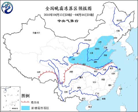 受冷空氣影響,預計,13日夜間到14日早晨,遼寧西部和南部、河北、京津地區(qū)、山西、陜西中北部、甘肅南部和東部、山東、河南、安徽北部、江蘇北部等地將會出現(xiàn)霜凍。
