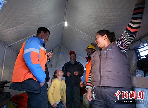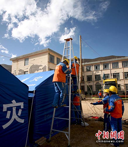 中新網(wǎng)青海玉樹(shù)4月21日電(夏江 記者劉忠俊)今晚,我終于可以看書(shū)學(xué)習(xí)了!紅旗小學(xué)6歲的青梅拉措拉著媽媽的手高興地說(shuō)。青海玉樹(shù)4.14地震發(fā)生以來(lái),玉樹(shù)州最大的小學(xué)紅旗小學(xué)就停止了供電,經(jīng)過(guò)四川省電力公司抗震救災(zāi)搶險(xiǎn)隊(duì)員的努力,玉樹(shù)紅旗小學(xué)全面恢復(fù)供電。