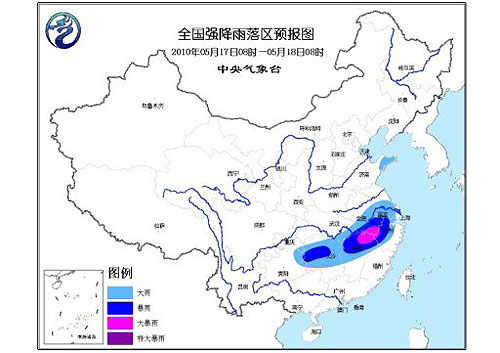 中新網(wǎng)5月17日電 中央氣象臺(tái)17日06時(shí)繼續(xù)發(fā)布暴雨藍(lán)色預(yù)警:預(yù)計(jì),17日08時(shí)到18日08時(shí),湖北東部、安徽中南部、江蘇中南部、浙江中西部、江西中北部、湖南中北部、貴州東北部及山東半島等地有大到暴雨。