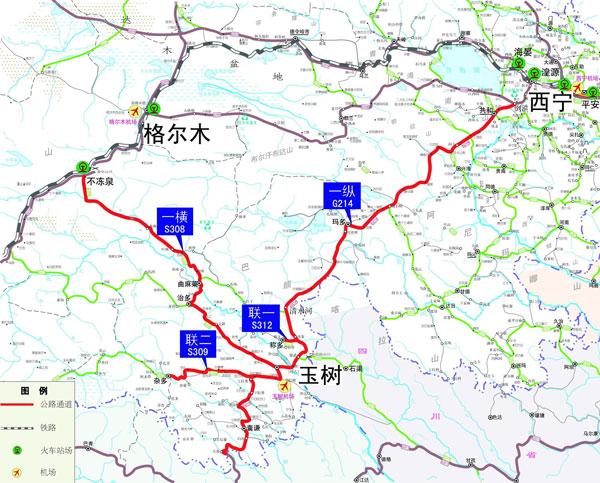 干線公路 構建“一縱一橫兩聯(lián)”生命線公路通道:“一縱”為國道214線共和至多普瑪(青藏界)段、“一橫”為省道308線玉樹至不凍泉段、“聯(lián)一”為省道312線珍秦至稱多段、“聯(lián)二”為省道309線多拉麻科至雜多段。整治改造1717公里,其中一級公路10公里,二級公路1277公里,三級公路430公里。 |