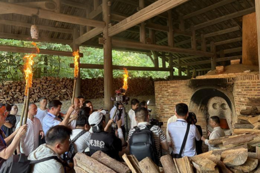 瑤族油茶習(xí)俗是國家級非物質(zhì)文化遺產(chǎn)代表性項目。近日,在廣西桂林,該項目的廣西區(qū)級代表性傳承人周黎維,在其工坊內(nèi)現(xiàn)場捶制油茶,春茶混著老姜片炸出辛辣香氣,引得一眾海外游客嘖嘖稱贊。