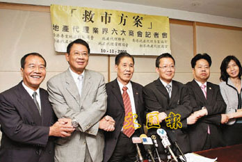 六大地產(chǎn)代理商會(huì)(香港專業(yè)地產(chǎn)顧問(wèn)商會(huì)、地產(chǎn)代理聯(lián)會(huì)、香港地產(chǎn)代理專業(yè)協(xié)會(huì)、香港地產(chǎn)代理商總會(huì)、地產(chǎn)代理管理協(xié)會(huì)、新界地產(chǎn)代理商會(huì)),10日舉行記者會(huì)公布該會(huì)提出的六項(xiàng)“救市方案”。祥益地產(chǎn)總裁、香港專業(yè)地產(chǎn)顧問(wèn)商會(huì)會(huì)長(zhǎng)汪敦敬稱,近期銀行明顯收緊借貸限制,幾乎三個(gè)想買樓的買家,只有一個(gè)能夠成功取得銀行貸款,情況“很不正!。