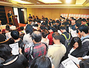 25日舉行的一場(chǎng)以銀主盤(pán)為主的拍賣(mài)場(chǎng),即吸引接近150人到場(chǎng)準(zhǔn)備“買(mǎi)便宜樓”,不但逼爆整個(gè)會(huì)場(chǎng),遲到的準(zhǔn)買(mǎi)家更不惜在會(huì)場(chǎng)門(mén)口人群中突圍舉手爭(zhēng)逐,部分單位就出現(xiàn)數(shù)名準(zhǔn)買(mǎi)家,經(jīng)十多口價(jià)才奪得心頭好的現(xiàn)象。