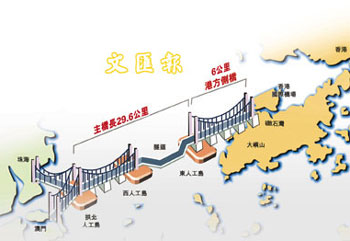 其中包括:大橋工程可行性研究已經(jīng)完成,將于下月由廣東省政府上報中央批準。為了加快進度,在等待報批的同時,三地政府于12月1日啟動主體工程的初步設(shè)計招標,預計明年4月可以啟動初步設(shè)計,并力爭在2009年動工;同時決定成立大橋管理局負責招標、融資及設(shè)計等具體工作。