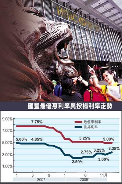 工銀亞洲董事暨副總經(jīng)理黃遠輝表示,估計匯豐此次行動,主要想追回早前下調(diào)最優(yōu)惠利率25點子的息差。他指,業(yè)界對經(jīng)濟展望仍不樂觀,全球潛在的通縮風險大增,加上不排除美國會于本月16日再次減息,因此料以上各種因素,會對個別銀行的按息調(diào)整構(gòu)成一定壓力。他認為,由于整體投資市場于金融海嘯打擊下崩潰,按揭業(yè)務(wù)仍是各家必爭之地,料即使銀行上調(diào)按息,幅度也不會太大。